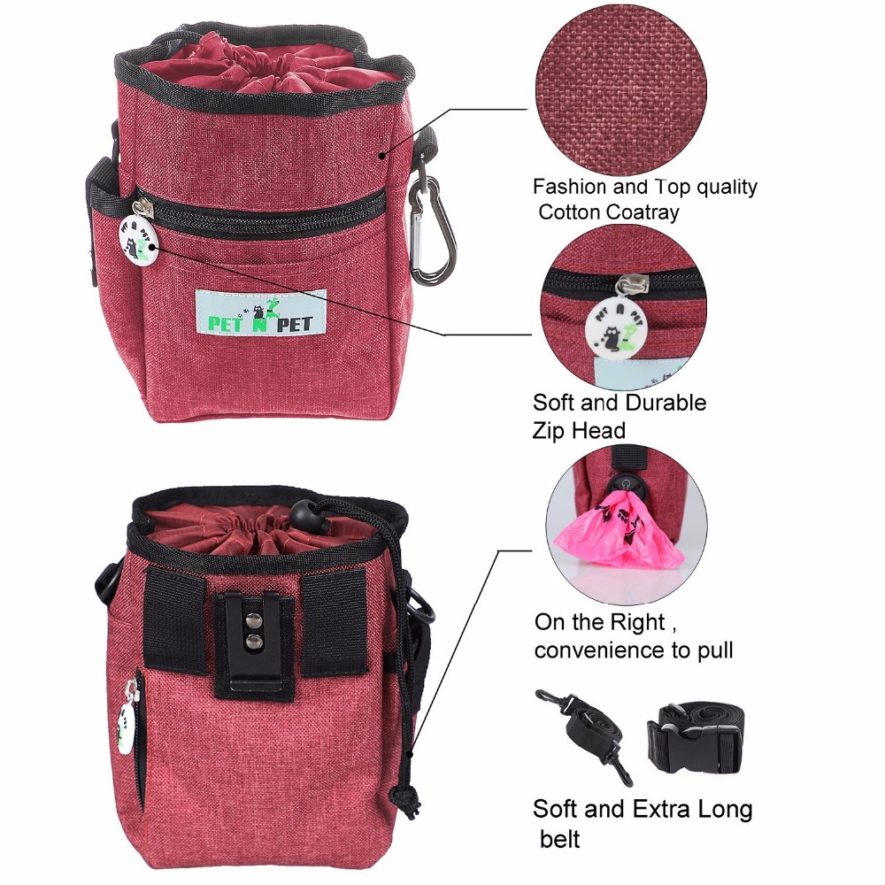 - Built-in bag dispenser – The built-in bag dispenser is on the right side of the pouch, NOT ON THE BACK. It is very convenient to pull out poop bags while walking. Just look back and pull!